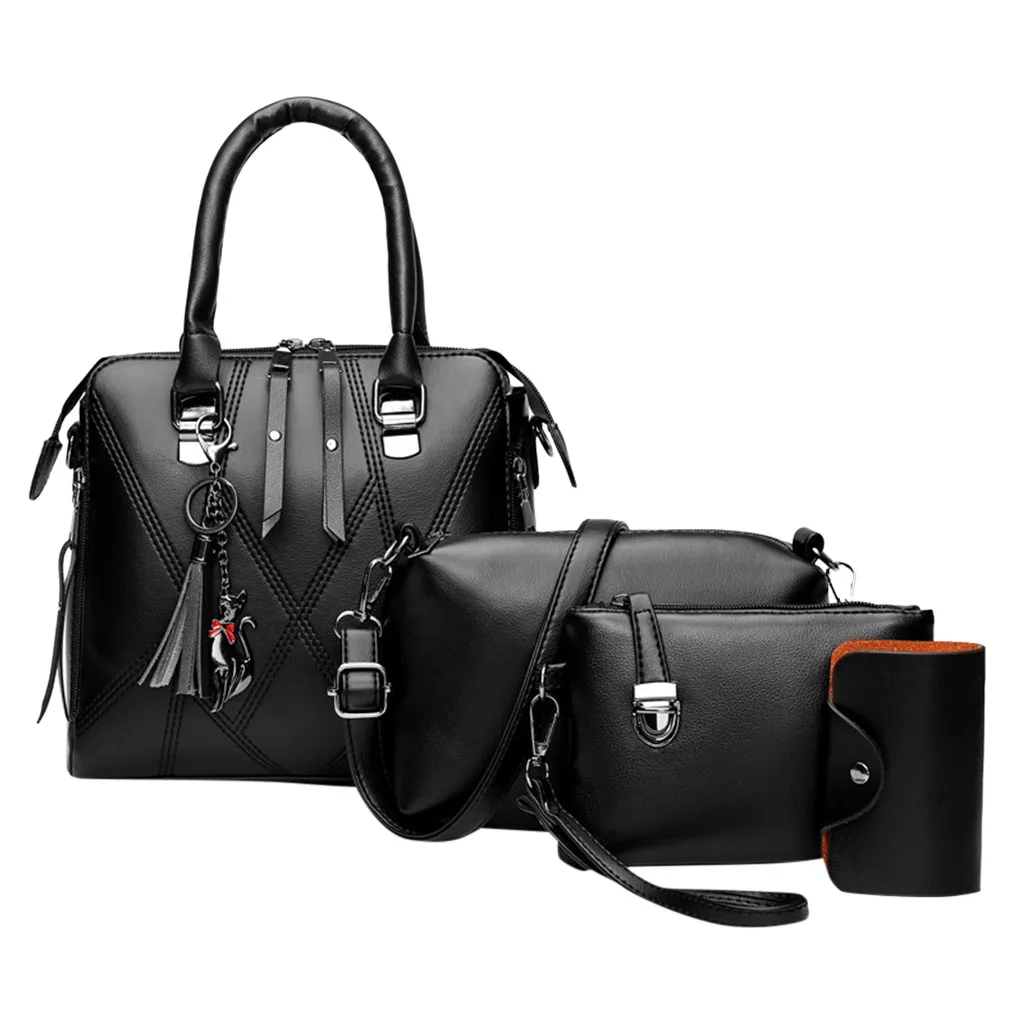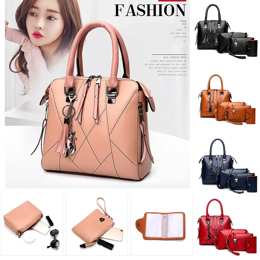SALE 4Pcs Women Fashion Pattern Solid Fringe Purse +Messenger Bag+Handbag+Wallet PU leather Shoulder bag